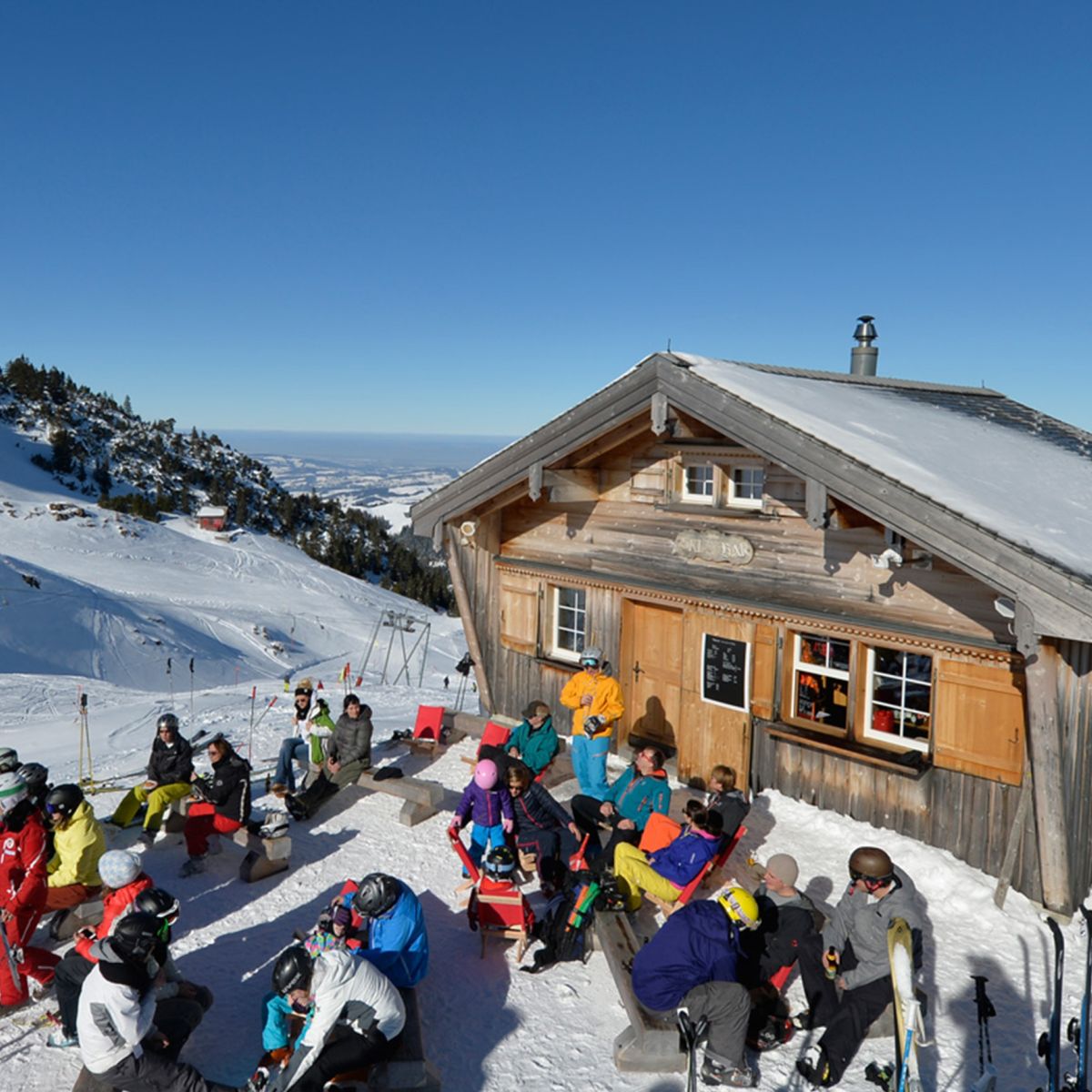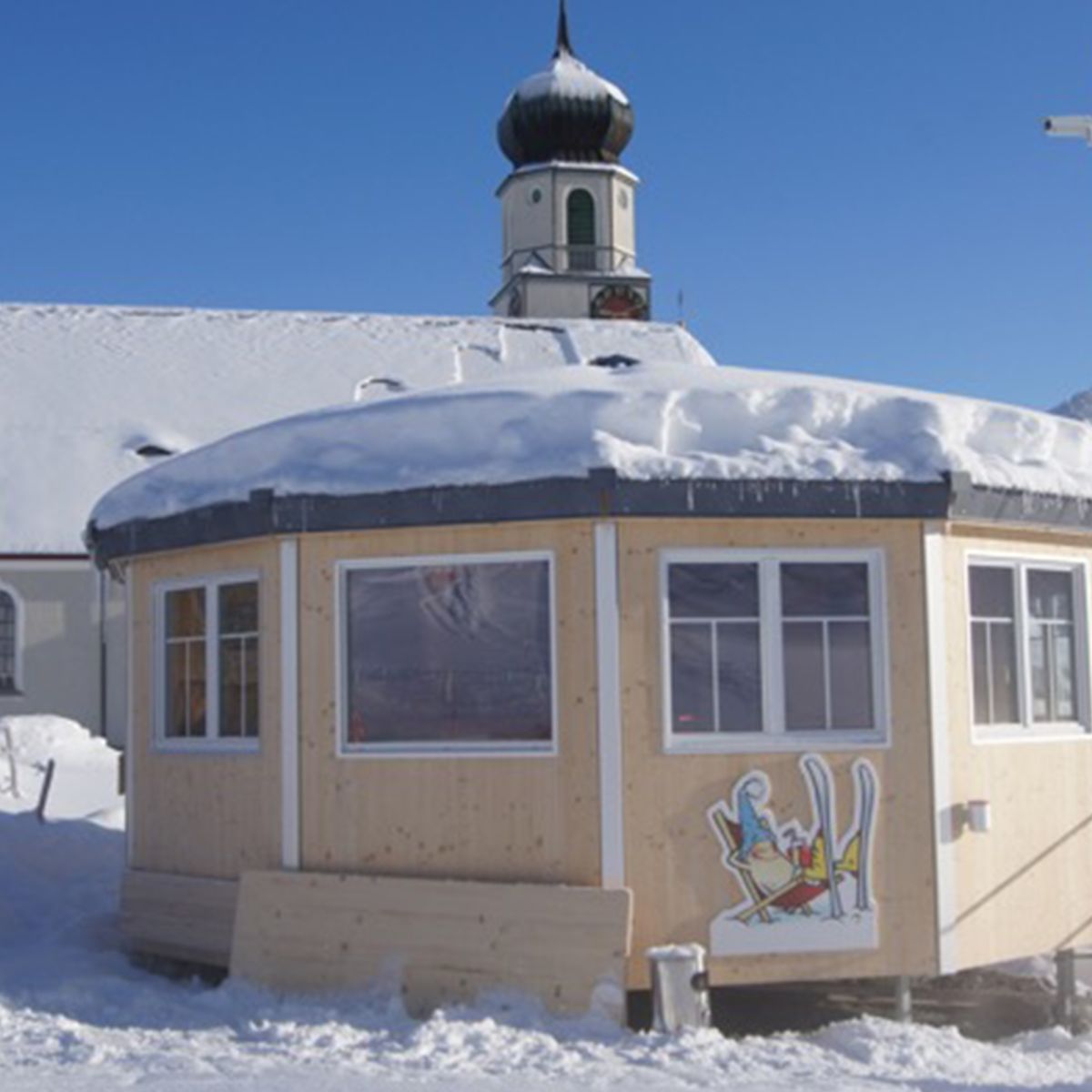 Bei einem Kaffee und einem Snack kann man in der Wärme die Kinder im Kinderland bei den ersten Schwüngen mitverfolgen.